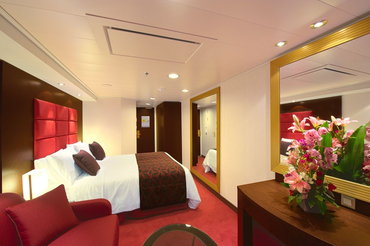 Каюти с балкон, каюти с прозорец / не се отваря /, вътрешни каюти, каюти за инвалиди. Всички с интерактивна ТВ, телефон, сейф, минибар, климатик, интернет срещу заплащане.