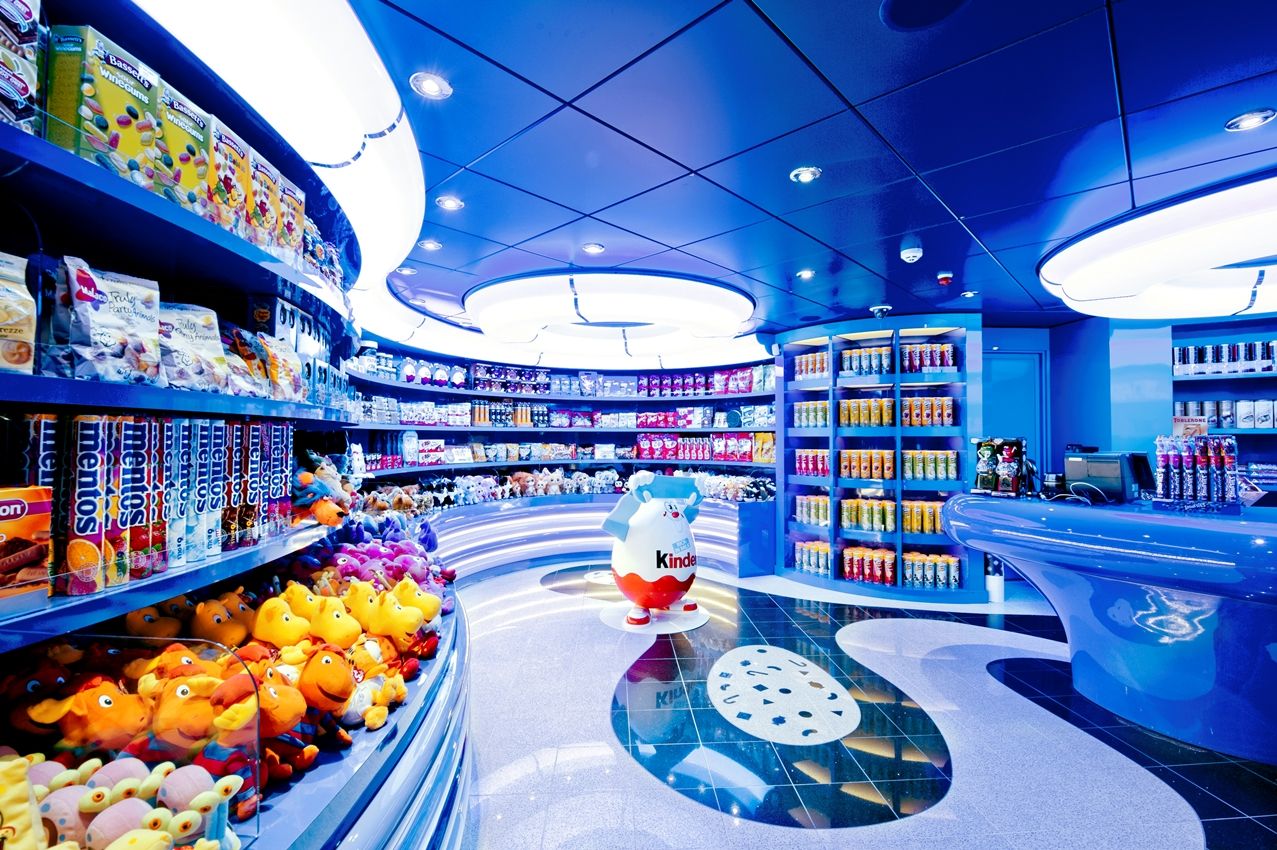 Шопинг зона с магазини и бутици за бижута, парфюмерия и козметика, часовници, чанти, цигари и маркови напитки. Специализиран магазин със сувенири и продукти на круизната компания.