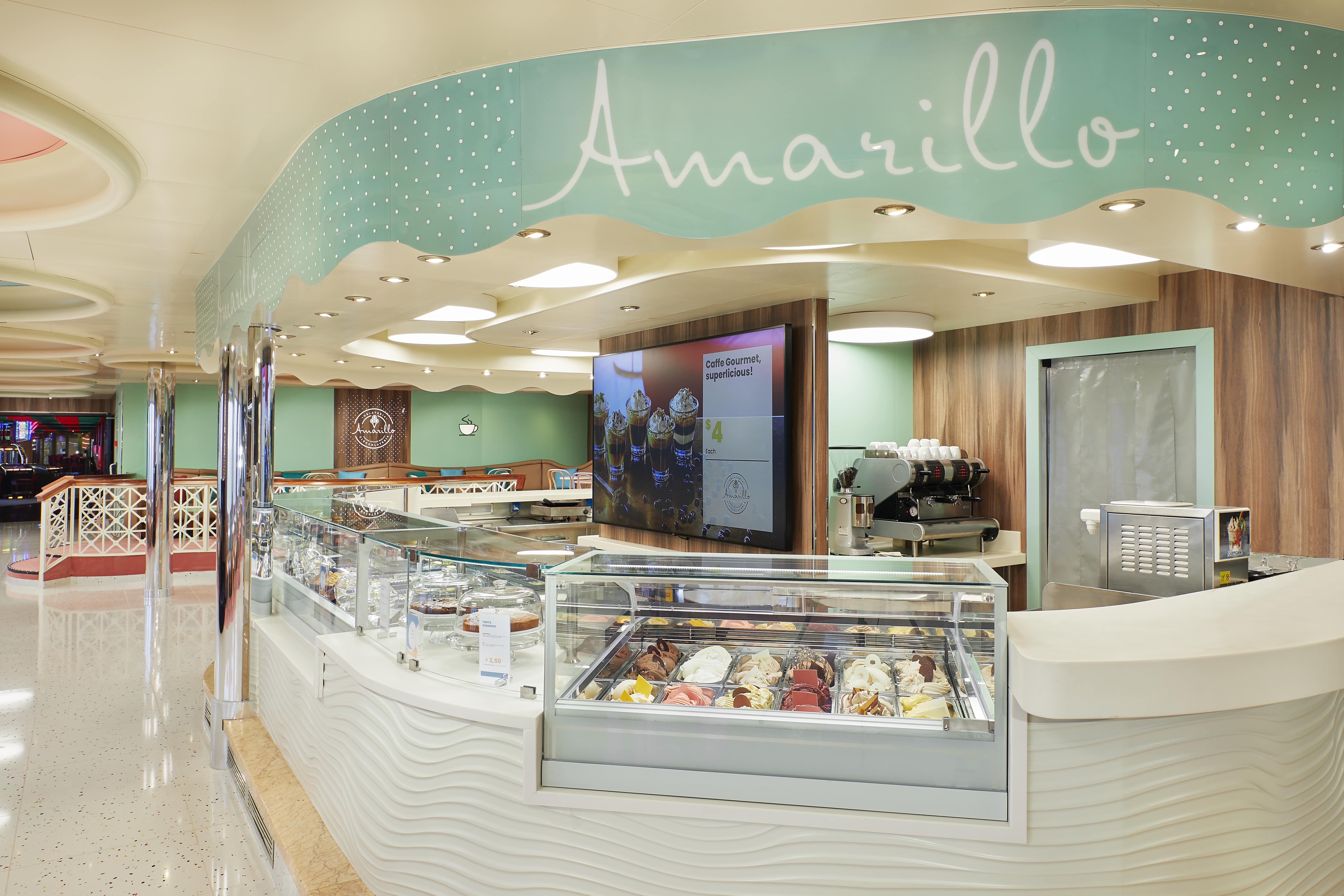 Ceres и Vesta са двата основни ресторанта за закуска, обяд и вечеря. Отделно бюфет ресторанта предлага голям избор от ястия на самообслужване. На борда ще намерите още La Fiorentina – класически стекхаус и Sushino – японски суши ресторант. Вкусни италиански сладоледи ви очакват в Джелатерия Amarillo.