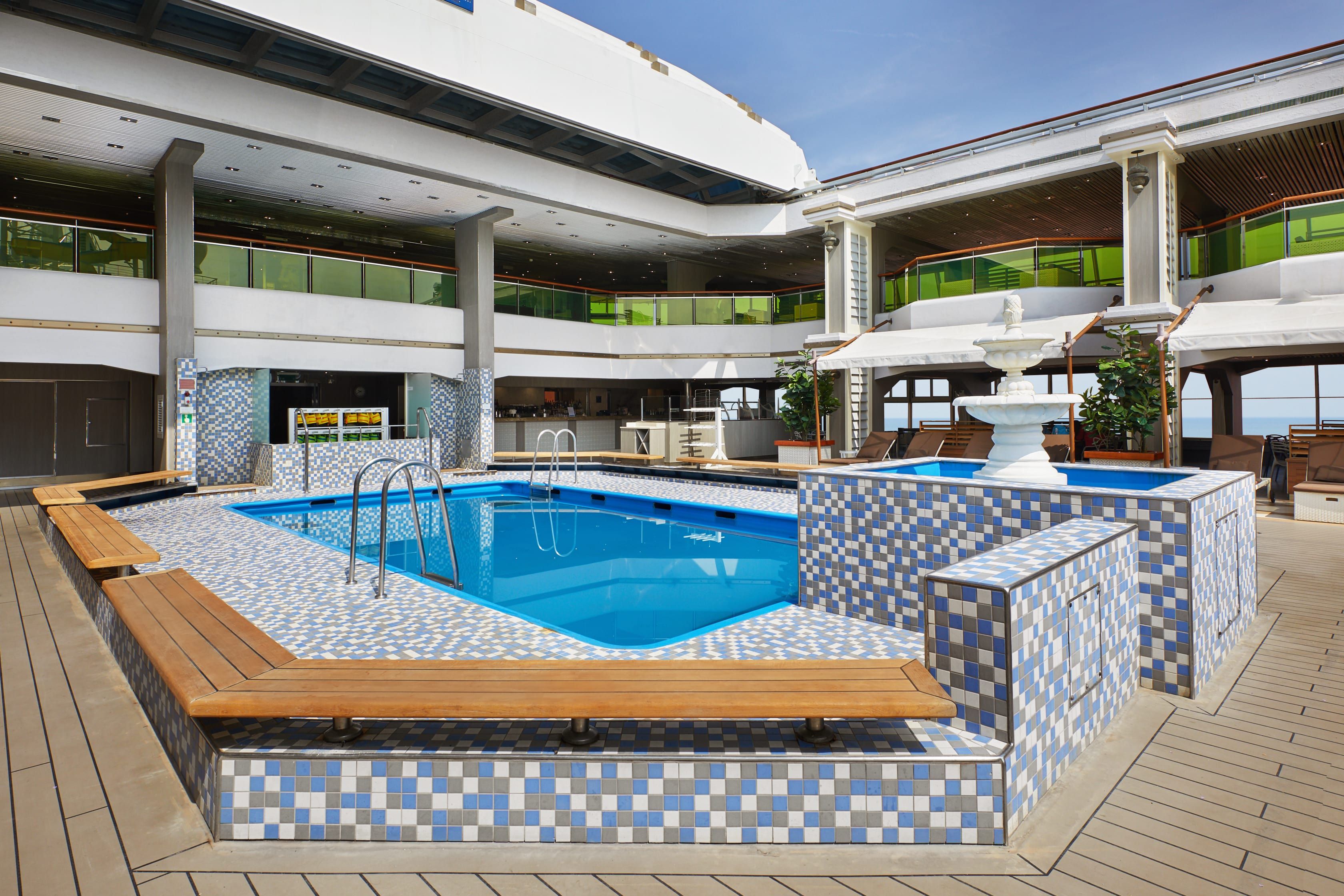 4 басейна, джакузи и плажна зона с шезлонги на откритата палуба, фитнес център с модерно оборудване, тенис игрище. Масажи и козметични процедури се предлагат в СПА центъра SAMSARA. Корабът има обособена зона за деца и тийнейджери с анимация и зона с видео игри.