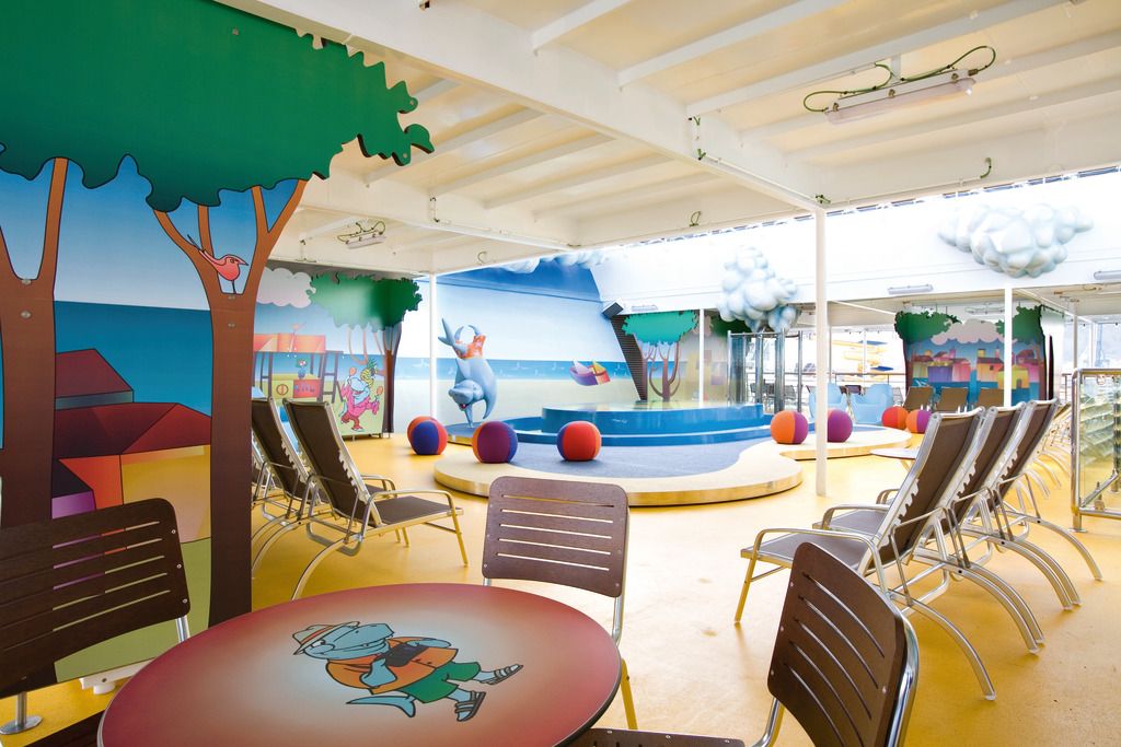 Корабът има обособена зона за деца и тийнейджери с анимация и зона с видео игри.
